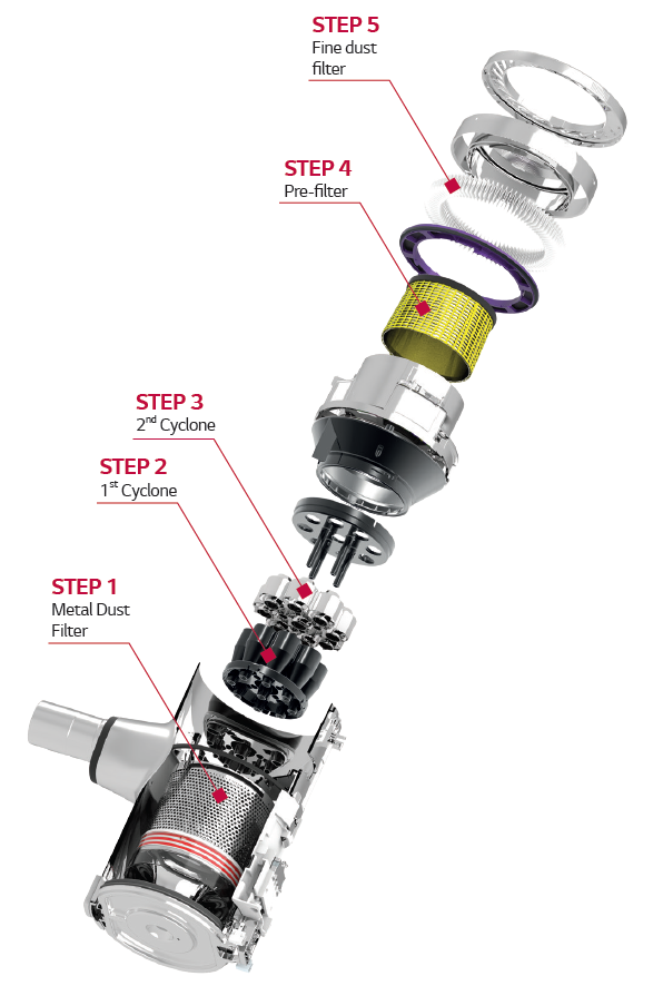 Busts the dust with 5 Step Filtration