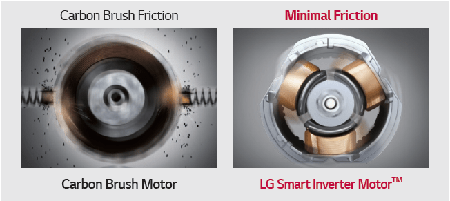 The key feature to note is that the LG CordZero vacuum is designed with a brushless motor, which means it works with minimal mechanical friction during operation. Motors with carbon brushes may create carbon dust which wears over time when the motor is operating. Since the Smart Inverter Motor™ doesn’t use any carbon brushes, it generates minimal carbon dust.
